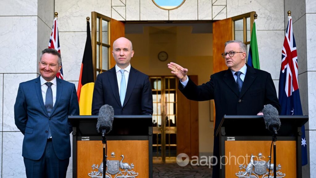 Chris Bowen, Matt Kean and Anthony Albanese.